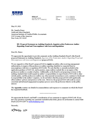 Comment Letters on Proposed Statement on Auditing Standards, Inquiries of the Predecessor Auditor Regarding Fraud and Noncompliance with Laws and Regulations. February 25, 2021