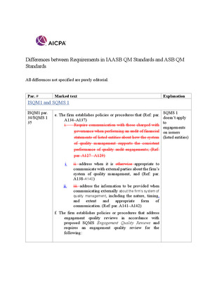 Differences between Requirements in IAASB QM Standards and ASB QM Standards