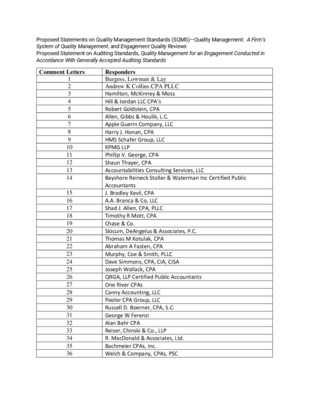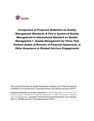 Comparison of Proposed Statement on Quality Management Standards A Firm’s System of Quality Management to International Standard on Quality Management 1, Quality Management for Firms That Perform Audits of Reviews of Financial Statements, or Other Assurance or Related Services Engagements