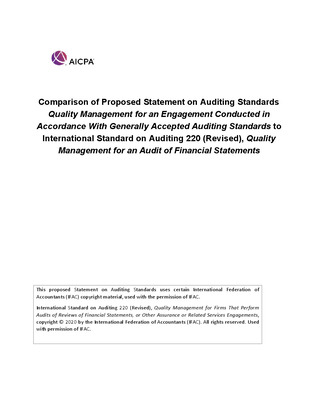 Comparison of Proposed Statement on Auditing Standards Quality Management for an Engagement Conducted in Accordance With Generally Accepted Auditing Standards to International Standard on Auditing 220 (Revised), Quality Management for an Audit of Financial Statements