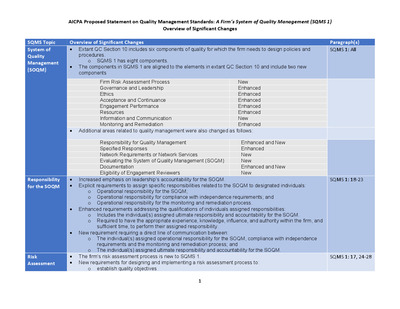 AICPA Proposed Statement on Quality Management Standards: A Firm’s System of Quality Management (SQMS 1) Overview of Significant Changes