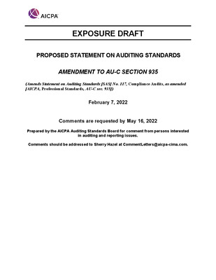 Proposed Statement on Auditing Standards, Amendment to AU-C Section 935; Exposure Draft (American Institute of Certified Public Accountants), 2022, February 7