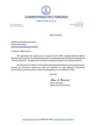 Comment Letters on Proposed Statement on Auditing Standards, Amendment to AU-C Section 935