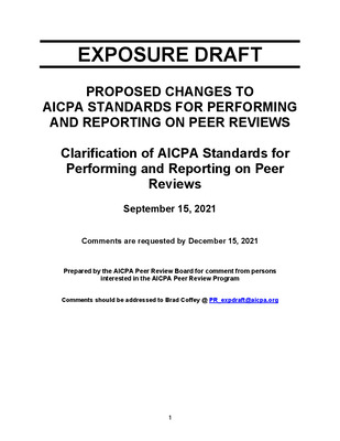 Proposed Changes to AICPA Standards for performing and Reporting on Peer Reviews, Clarification of AICPA Standards for Performing and Reporting on Peer Reviews; Exposure Draft (American Institute of Certified Public Accountants), 2021, September 15