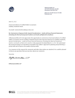 Comment Letters on Proposed Statement on Auditing Standards, Special Considerations - Audits of Group Financial Statements (Including the Work of Component Auditors and Audits of Referred-to Auditors)