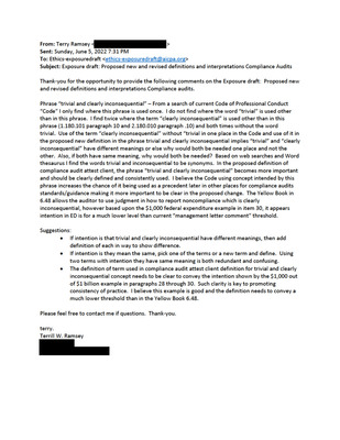 Comment Letters on Proposed new and revised definitions and interpretations Compliance audits New definition "compliance audit" New definition "compliance audit attest client" Revised definition "financial statement attest client" Revised "Client Affiliates" interpretation Revised "State and Local Governments Client Affiliates" interpretation June 3, 2022