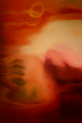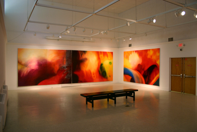 From artist's thesis, "Descriptive Analysis": Woo You is a series comprised of five diptych paintings. Each diptych is 8’ tall x 12’ wide. The panels within the diptychs are 8’ tall x 6’ wide and joined together by 4 machine bolts and wing nuts.