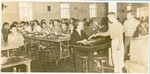 Cafeteria scene with cashier in the center. 1955. Date is estimated.
