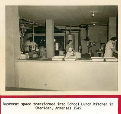Basement space transformed into School Lunch kitchen in Sheridan, Arkansas 1949