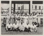 Outdoor group photograph of twelve people. Ruth Powell is third from right in second row.
