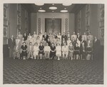 Large unidentified group. Ruth Powell is second from left in first row. 1950. Date is estimated.