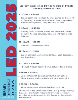 On March 31, 2025, 8 students from 4 North Mississippi High Schools participated in Library Experience Day with their school librarians.