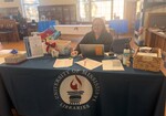 Kristin Rogers, Electronic Resources Librarian and Associate Professor, sits at the sign-in table in the Baxter Room.