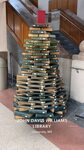 Participants Cassie Cooper Harrison, Camille Rodgers, Kristy Dowdy, Tiffany Russell, and Kourtney Mathews stand together in front of the library's Christmas tree.