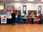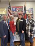 Dr. Marvin Jeter (Mississippi Library Commission), Jennifer Shy (Hayes Cooper Center), Penni Morgan (Bell Academy), and Thelma Cartwright (Cleveland Central Middle School) stand in front of display by the Mississippi Library Commission for the Veterans History Project, a project of the Library of Congress.