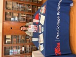 Lauren Davenport sits at an information table for Ole Miss Pre-College Programs, available to K-12 students.