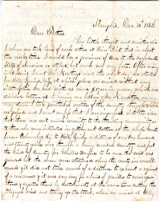 Handwritten Letter Signed. 30 December 1862. [Christopher R. Greene, 1827-1885)] to his father [Simon H. Greene of Richmond, Rhode Island]. Memphis [Tennessee]. 10pp.