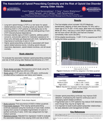 Study objective: To evaluate the association between opioid prescribing continuity and risk of opioid use disorder (OUD) among older Medicare beneficiaries on long term opioid therapy (LTOT).