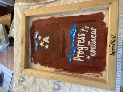 Caelyn M. Ditz, Embedded Counselor in the Counseling Center, worked in exploratory block and screen printing on paper and fabric.