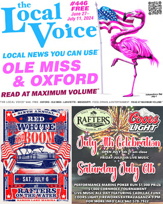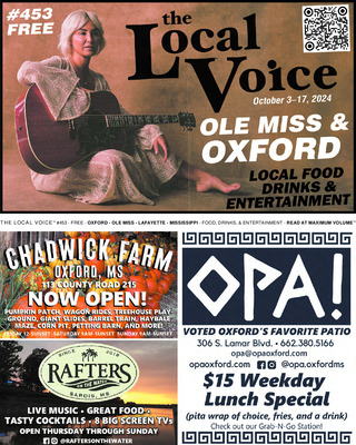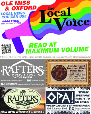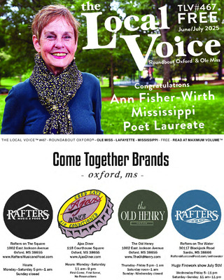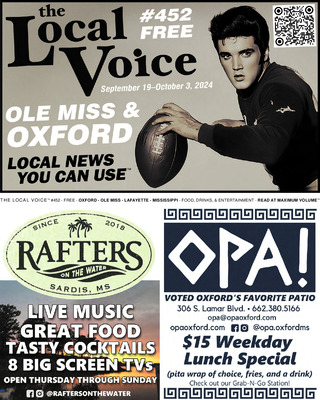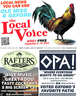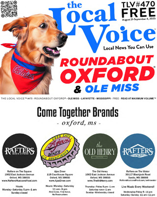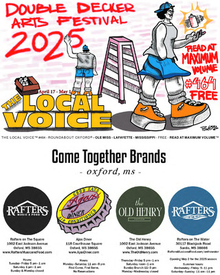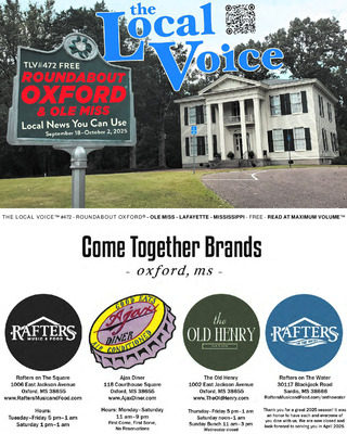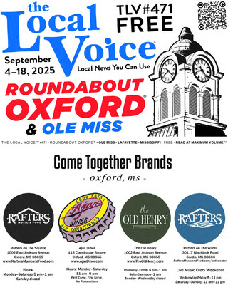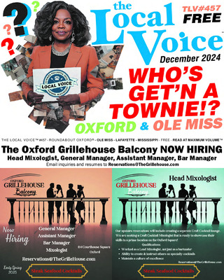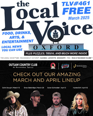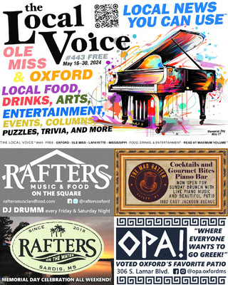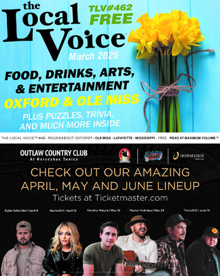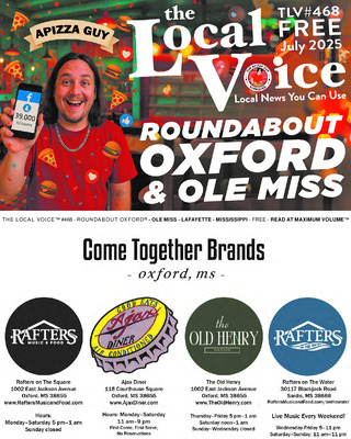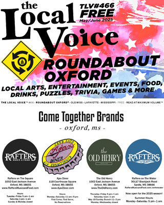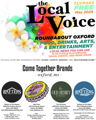 The Local Voice is a bimonthly entertainment guide, newspaper, website, and social media company based in Oxford, Mississippi, covering and distributed in North Central Mississippi, including Oxford, Ole Miss, Taylor, Abbeville, Water Valley, Lafayette County, Yalobusha County, and parts of Panola County, Marshall, and Lee County.